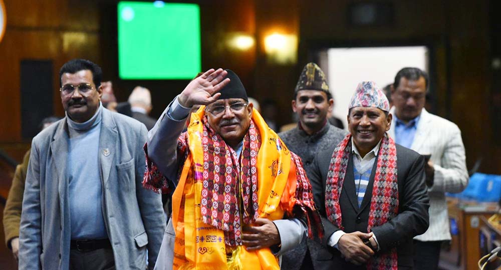 सात दल र तीन स्वतन्त्र गरी १६९ सांसदको समर्थनमा प्रधानमन्त्री नियुक्त भएका दाहाललाई उनलाई २६८ सांसदले विश्वासको मत दिएका हुन ।