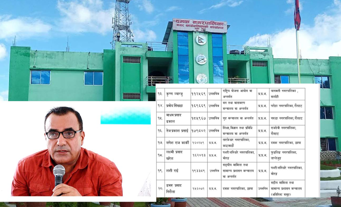 कार्यालयको क्वार्टरभित्रै एक महिलासँगको अश्लील क्रियाकलाप सार्वजनिक भएपछि विवादित बनेका झापा दमक नगरपालिकाका प्रमुख प्रशासकीय अधिकृत डमरुप्रसाद निरौला संघीय तथा सामान्य प्रशासन मन्त्रालयको अतिरिक्त समूहमा तानिएका छन् ।